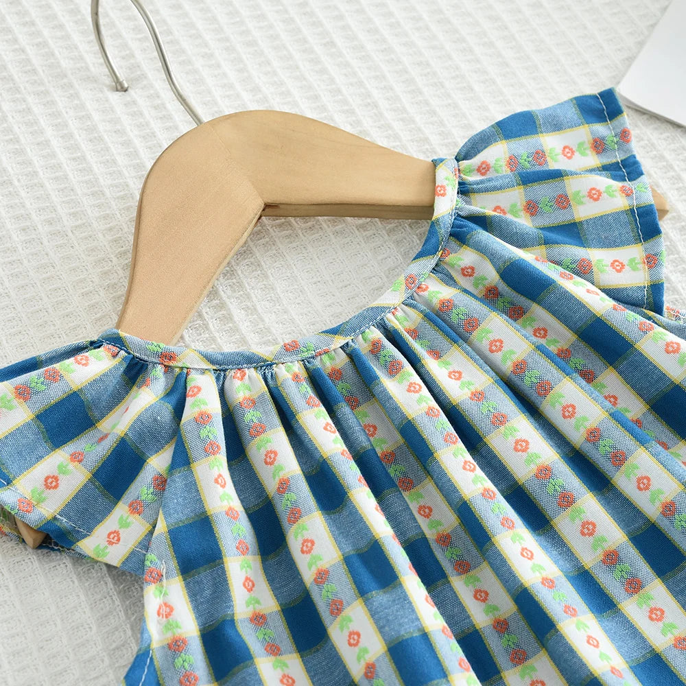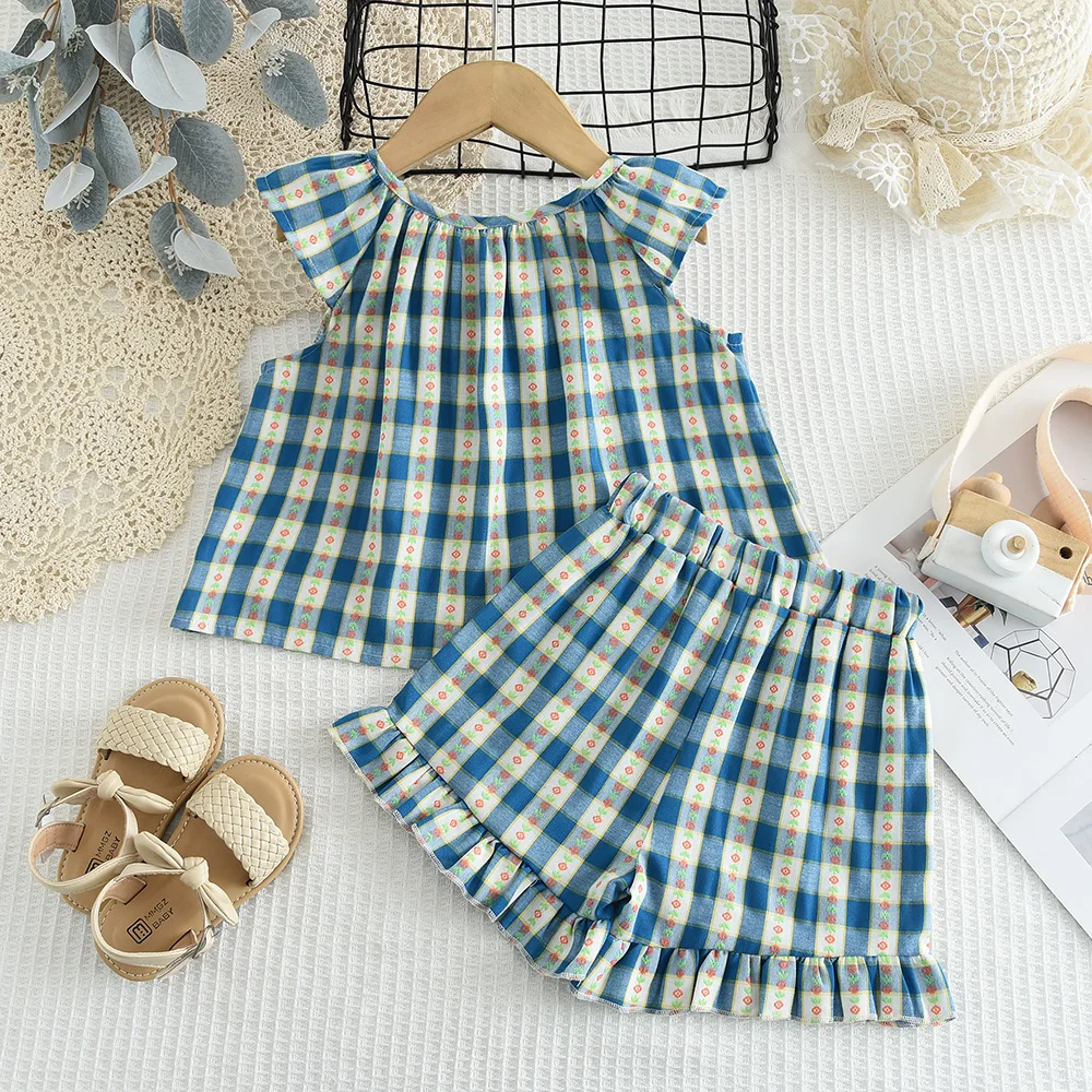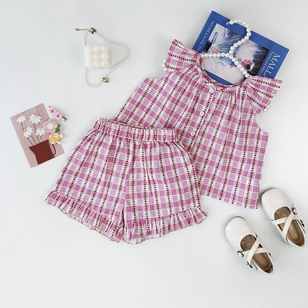 Bear Leader Girls' Summer Fashion Set Children's Flower Print Flying Sleeve Top+Shorts Two Piece Cute Little Girl Refreshing Set