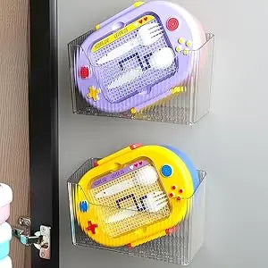 The vertical wall mounted storage bin helps declutter countertops by organizing toothbrushes, sponges, or food container lids—ideal for small homes, RVs, or apartments.