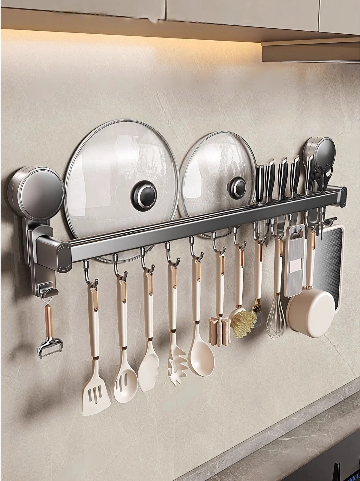 Grey Wall Mounted No-Punch Large Capacity Storage Utensils Metal Kitchen Shelf Skeletonized Drainage Design Easy To Clean